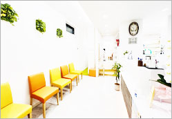 リラックスした気持ちで診療を受けていただけるよう、スペースを広くとりました。また、椅子を倒した際にお子さまも寝やすい、背もたれ幅の広いチェアをご用意しております。 |
